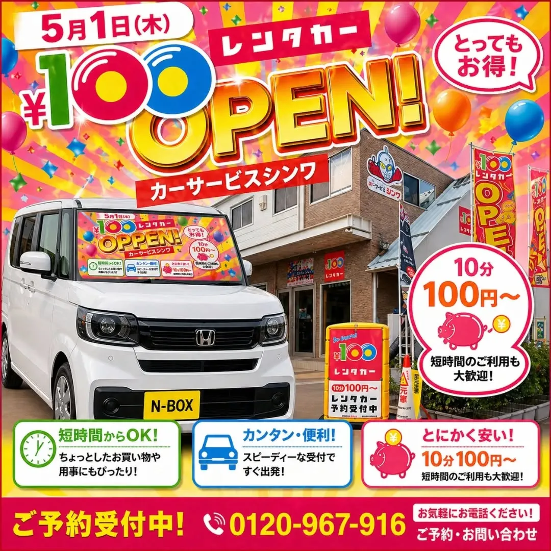 100円レンタカーを始めるカーサービスシンワです‼️‼️