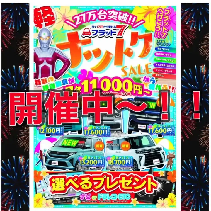 カーリースならカーサービスシンワへぜひおまかせください🐹🚗💨 カーリースならカーサービスシンワへぜひおまかせください🐹🚗💨こんにちは☀市田です🌼✨🚗27万台突破記念!!ナツトクSALE開催中🌺✨フラット7なら、新車の軽自動車が🌈月々11,000円〜乗れちゃう‼️(ボーナス払いあ…